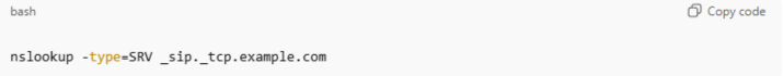 The “ nslookup “ command is one of the easiest ways to perform a DNS SRV record check.