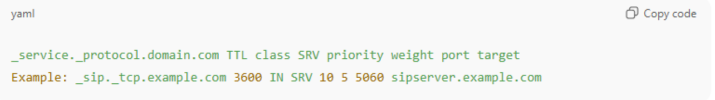 - VoIP / SIP servers: “ _sip._tcp.domain.com “ manages call routing efficiently.